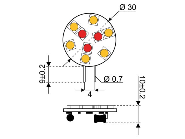 Talamex G4 LED Warm Wit / Rood Dimbaar 10-30V 1,4W / 0,5W 9 LEDS side pin