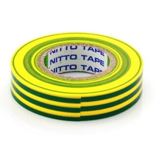 Geel Groene PVC Isolatietape lengte op rol 10 meter, breedte van de pvc tape 15mm.