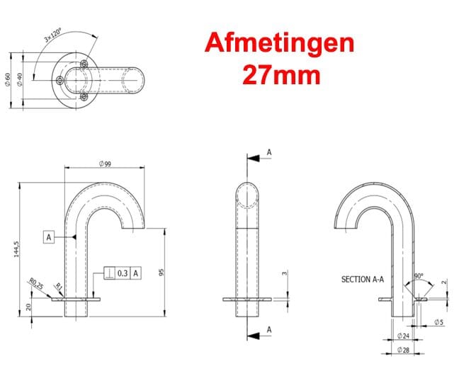 RVS Zwanenhals Kabeldoorvoer 27mm