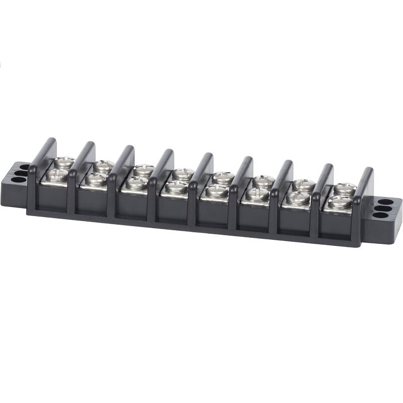 Blue Sea Terminal blok 30A met 8 circuits. Ontwerp met gesloten achterkant isoleert de stroom volledig van het montageoppervlak. Elk schroevenpaar is één geïsoleerd circuit.
